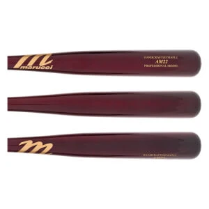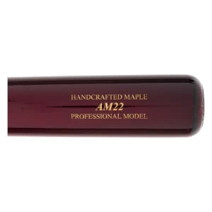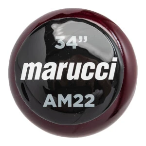 This AM22 model of Marucci bat is built with a medium thickness barrel and handle. The end result is a well-balanced bat that still can feature a decent-sized barrel. On the handle end, the bat is bottomed off with a flared knob (pretty decent flare to be honest!). In addition, this bat is going to feature the MLB Ink Dot test so you know it is constructed from some top-tier maple wood. And if all of these features weren’t enough, you’ll be put over the edge by the cherry color of the bat!